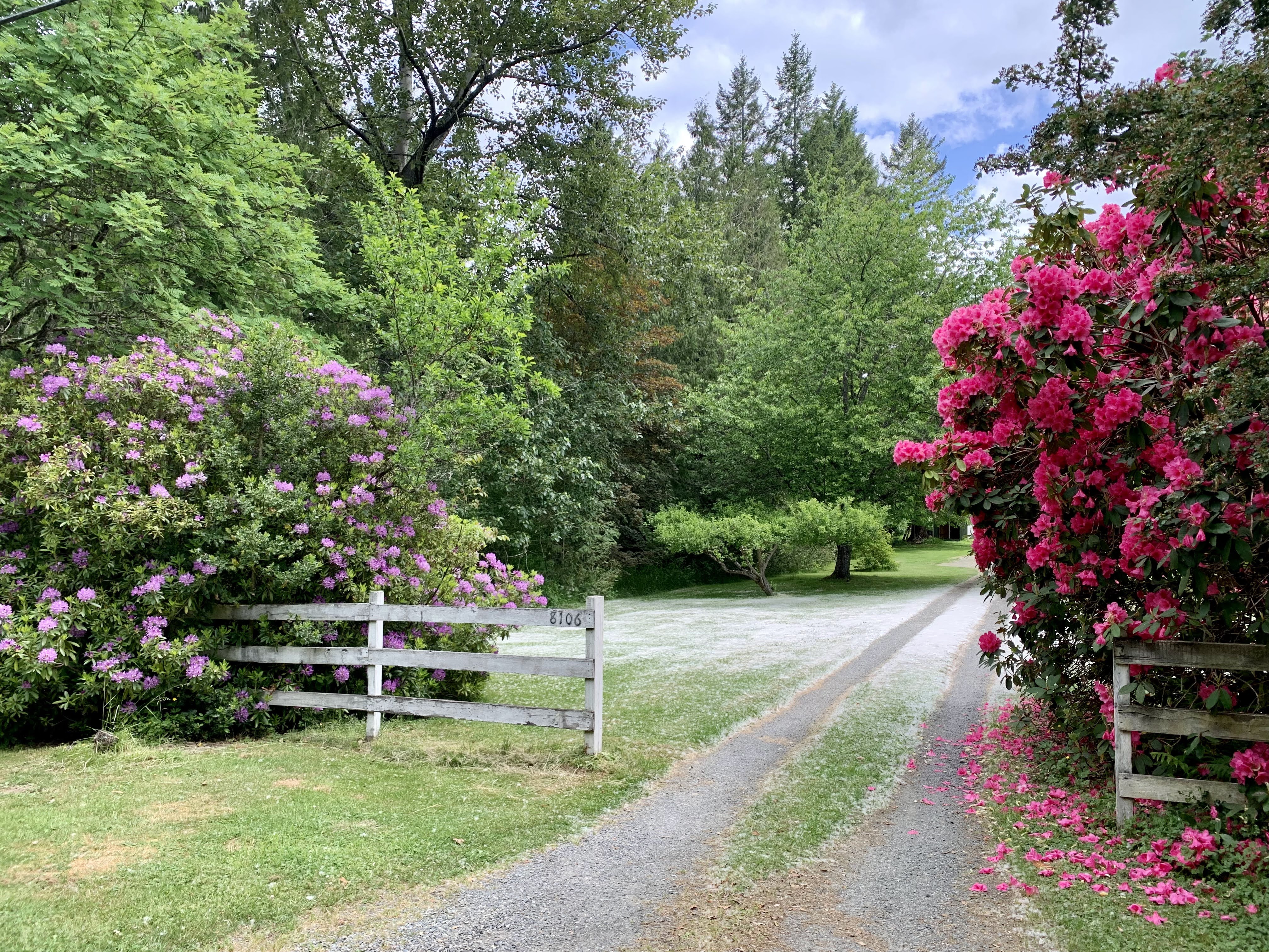 Some glimmers are small, but this one is like a gigantic mural, just shouting out gorgeousness to behold. the blanket of white cotton! the pink petals scattered so unbelievably random yet perfectly placed by wind and gravity. life just being itself.