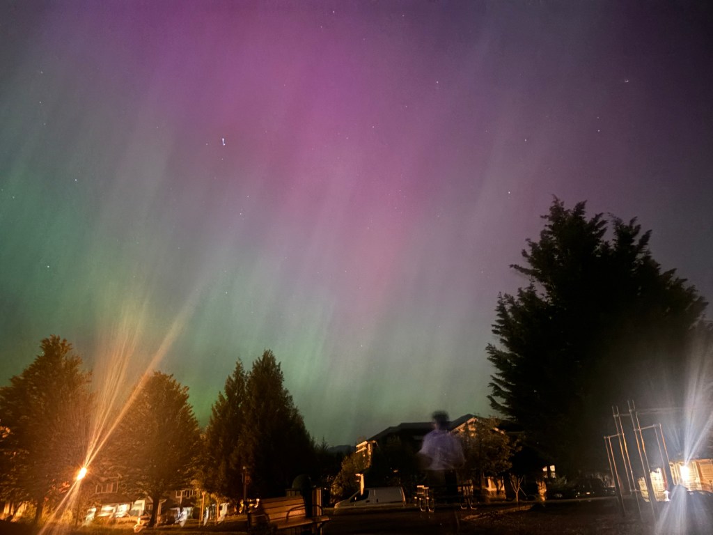 Two nights ago I saw Northern Lights for the first time. My 15-year-old learned they were happening and woke me up to share the news. Together we walked to a nearby park to catch the show in the sky.